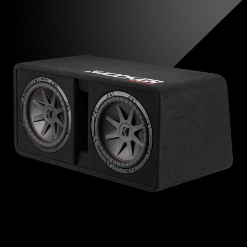 CompVR Subwoofers loaded in factory-tuned loaded enclosures have been reengineered for incredible KICKER bass with Forced-Air Cooling™. You get cool, reliable speakers that last and last. Thick black carpeting gives the tough enclosure a sleek, refined look. The front-facing tuned port raises the bar for acoustic efficiency, creating incredible bass levels with minimal amplifier power.